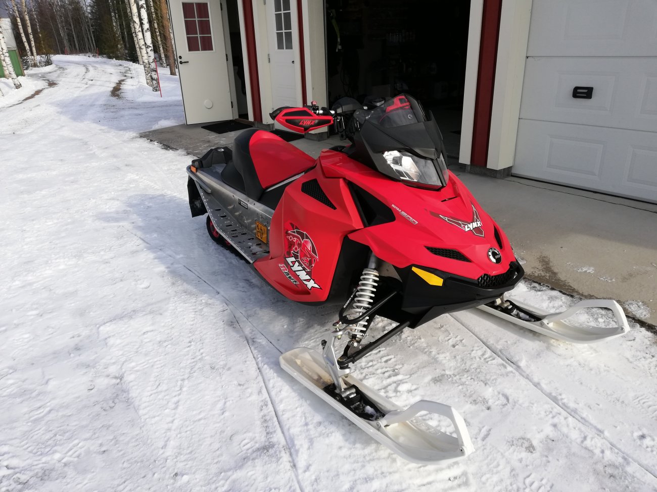 3700 km ajetun helmen löysin enkä malttanut jäättää ostamatta. 503 moottorilla. Hyvä tuolla on ajella monenlaisia ajoja rekihommista touringletkaan. Tarkoitus olisi varustella ukkoa ja kelkkaa ajan henkeen