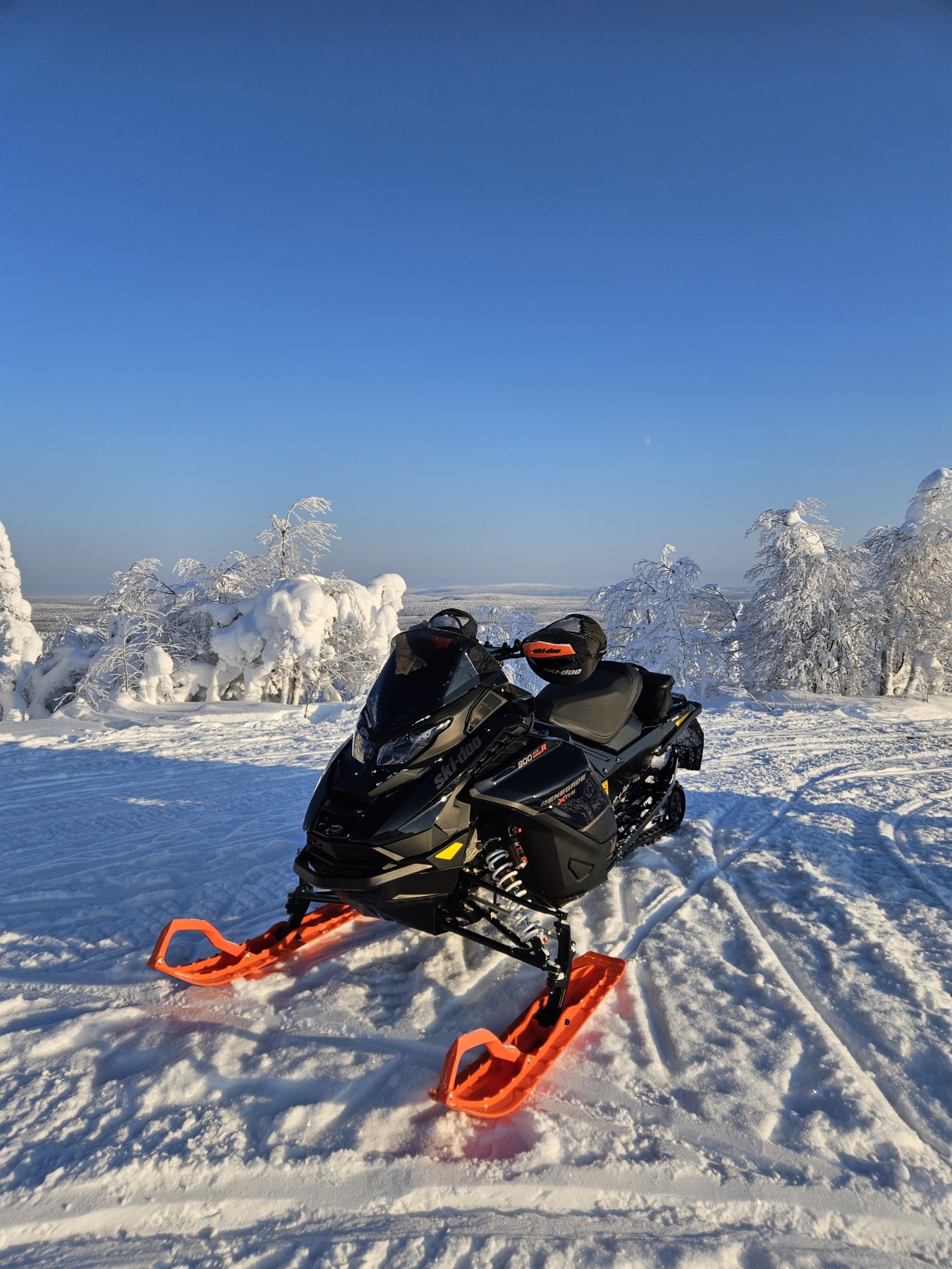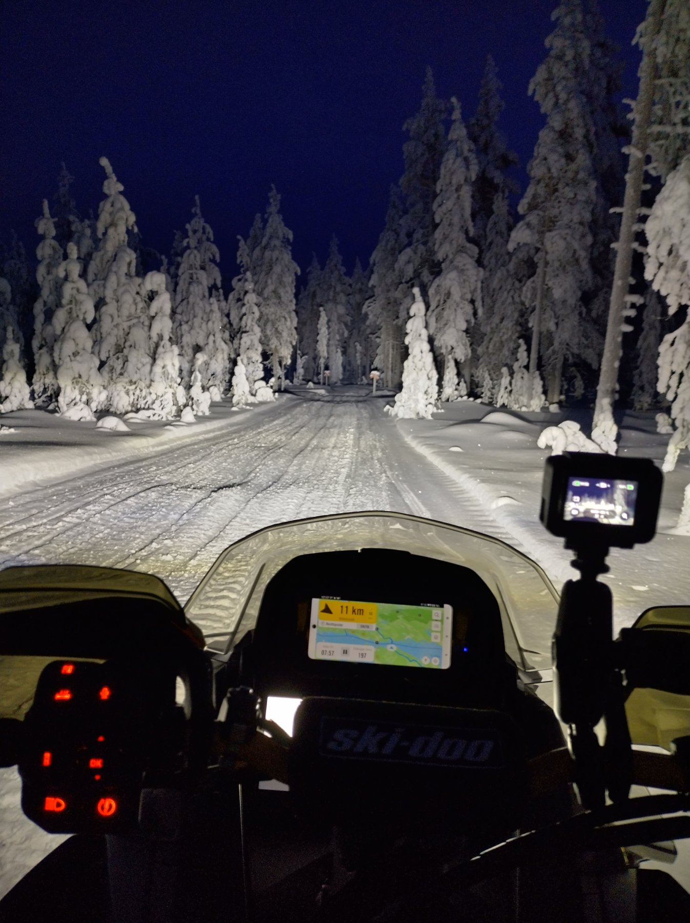 Hotellin aamupalaa ootellesa jatketaan vielä... Onko sulla siis samat tuuliohjaimet ja tuulilasi kuin mulla? Näkyy tänne laittamassani kuvasa. Jos on ja ei auta. Seuraava apu on lämpöistuin. On pirun kallis, mutta lämmittää tehokkaasti. Itse käytän lämmitystä tauoilta lähtiesä vähän aikaa ja sitten otan pois päältä. Siinä on kaksi tehoa ja pienempi teho vois olla jatkuvaan käyttöön ok. Lisävalot sivuilla voi myös vaikuttaa viimaan, mulla ollut nämä molemmissa Gen5 kelkoisa koko ajan paikollaan, niin en täyttä varmuutta osaa sanoa. Pirun kalliit nekin, mutta tuplaavat valotehon lähelle ja tekevät pimeäsä ajon paljon helpommaksi, eli suosittelen näitäkin jos vielä viimaankin vaikuttavat. Ja sitten on se vaatetus, mikä tuntuu arka aihe täällä olevan Enkä todellakaan aja paksuisa ja raskaisa kamppeisa, Skidoon ajopuku on huomattavan kevyt verrattuna aiemmin käyttämiini. Ajopuvun alla Graftin tuulisuojilla varustettu tekninen kerrasto ja 509 kevyehkö suojaliivi. Kovemmilla pakkasilla laitan Skidoon fleecepuseron vielä päälle. Kypäränä käytän BRP Exome Sport lämpövisiirillä ja Linq sähköillä. Ajohanskoiksi ostin tälle talvea Klimin gore-tex hanskat ja gore-tex toimii hanskoissakin loistavasti. Ajokengät on Scottin irrotettavilla sisävuorilla olevat. Ja en edelleenkään itse ole näillä varusteilla ja vaatetuksella Gen5 kelkoisa huomannut mitään kylmyyttä ajoviimasta. Aamupalalle ja kelkkareissulle Kuusamosta Hossaan...