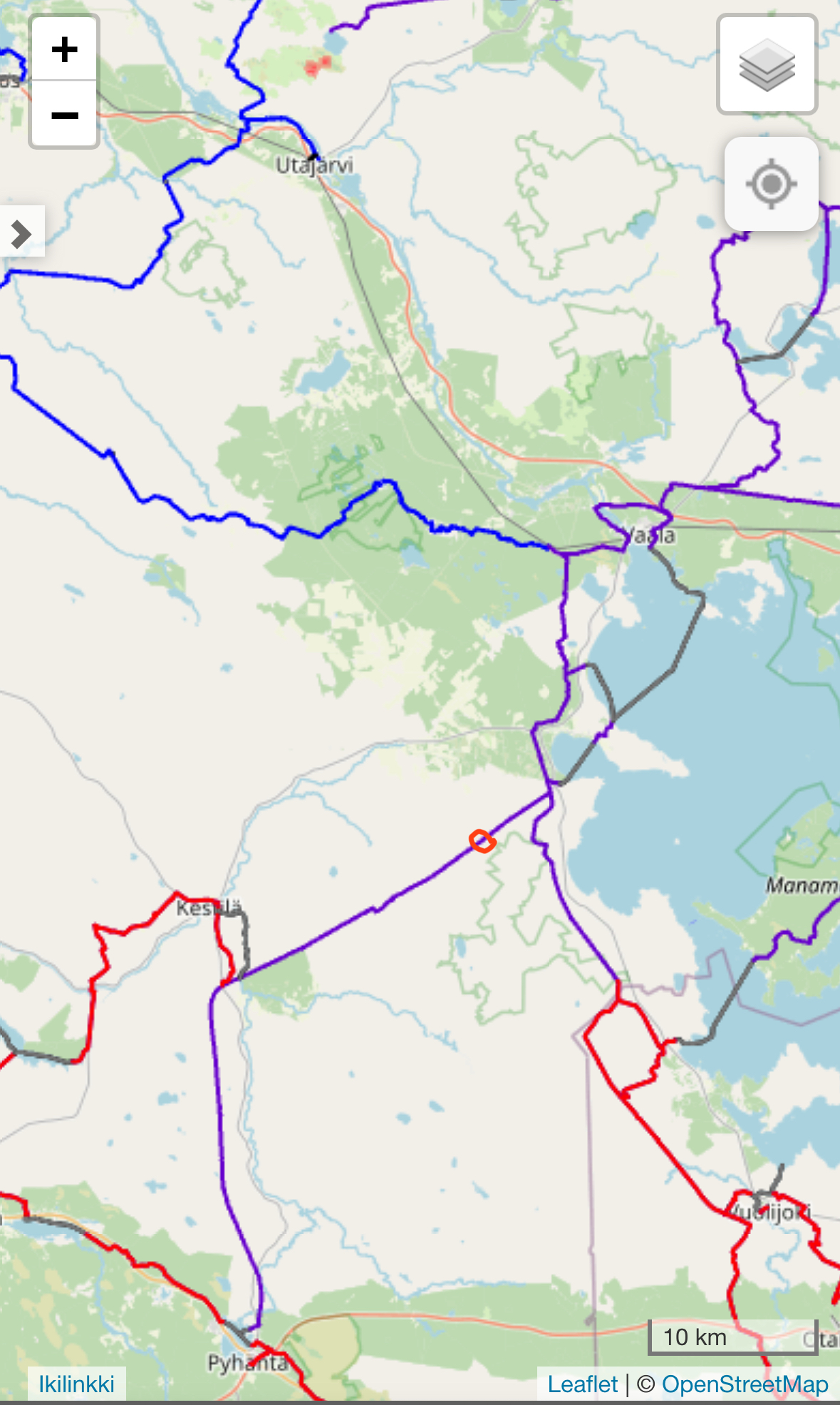 Mitenhän tämä reitin pätkä? Tuosta ei ilmeisesti saa ajaa läpi. Onko tietoa, voiko tuon kiertää jotenkin järkevästi. eli tuo punaisella ympyröity kohta. Oulujärven länsipuolella.
