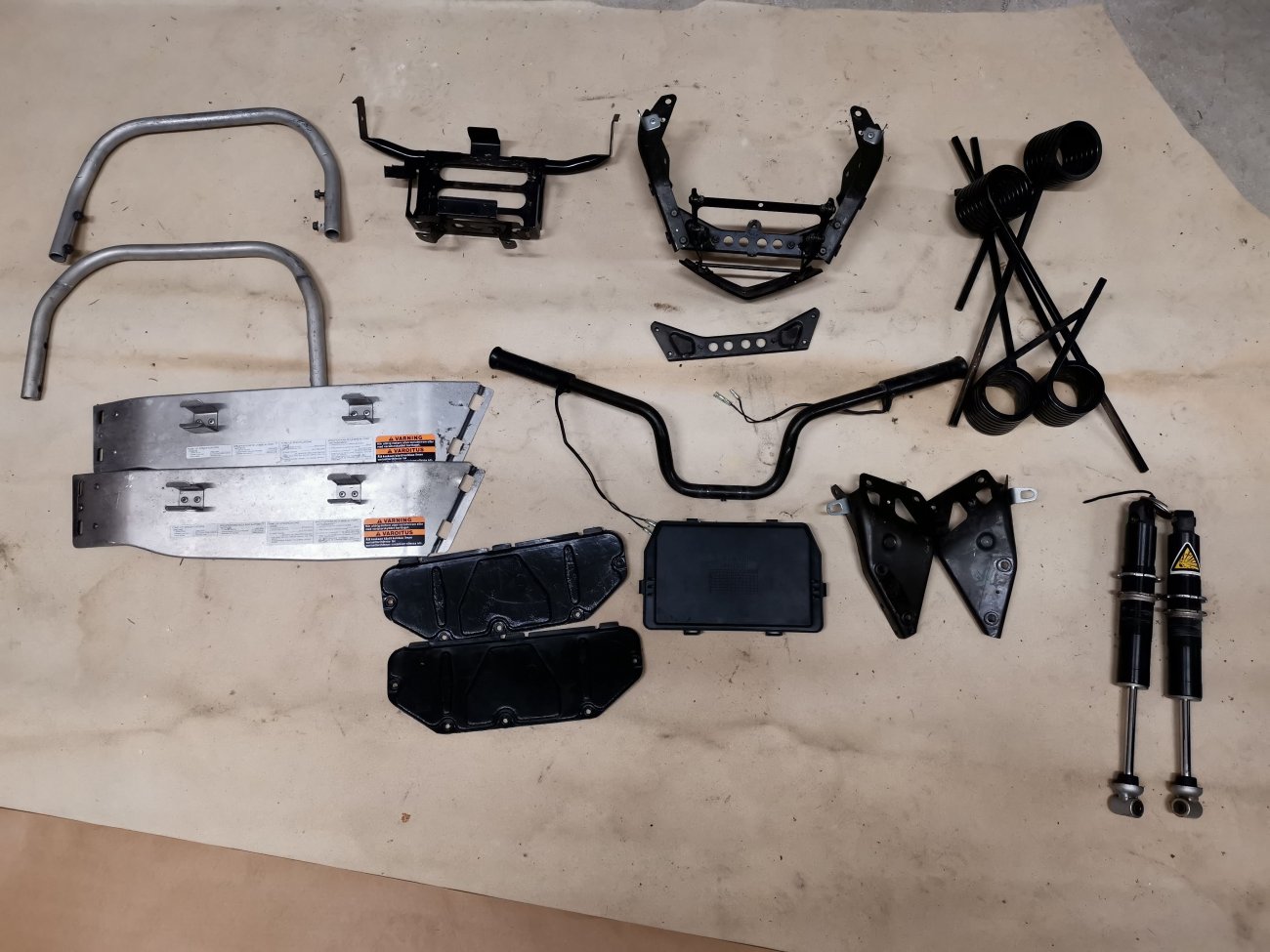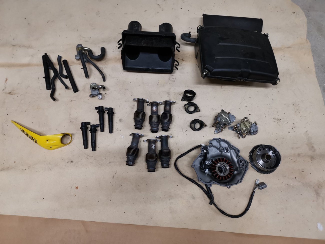 Purkuosia Yamaha RS Vector 2005 ja 2006 Bad Boy kelkoista. Osat Haminassa, toimitukset postilla ja matkahuollolla Yhteydenotot O5O4126000 tai YV - Kuomu MYYTY - Ajovaloumpio 50€ - Takavalo 30€ - Etupuskuri MYYTY - Tankin kate 40€ löytyy musta ja punainen - Muut muovit 10-30€/kpl - Pakoputki 100€ - Vaimennin 250€ - Lämpöpelti pakosarjan päälle 30€ - Etujäähdytin 100€ - Termostaattikotelo 30€ - Paisuntasäiliö 30€ - Letkut 10€/kpl - Jarrulevy 30€ - Jarrusatula BB 4-mäntä MYYTY - Jarrusatula 2-mäntä 80€ - Jarrukahva+sylinteri+letku 80€ - Käsijarrusatula 60€ - Ohjauksen osia 10-30€/kpl - BadBoy ohjauspylväs+korotuspala 80€ - Ohjaustangon kiinnikkeet 20€ - Raidetanko nivelillä 40€/kpl - Olkavarsi musta oik 150€ - Olkavarsi musta vas 150€ - Olkavarsi harmaa vas 150€ - Variaattoriakseli 130€ - Takapuskuri 15€ - Variaattorin suojapelti 20€ - Akkuteline 20€ - Kuomun sarana 30€ - Ohjaustanko lämmittimillä 40€ - Telaston jouset MYYTY - Pohjaluukku 15€ - Etuiskarit ilman jousia 150€/pari - Johtosarja 130€ - Virtalukko 20€ - Katkaisija vasen 50€ - Jännitteensäädin 100€ - Sytytyspuola 40€/kpl - Kuomunlukko 5€/kpl - Ketjukotelon pohja 100€ - Pakkikahva+vivut 80€ - Pakkiratas 50t 130€ - Alaratas 38t 80€ - Yläratas 22t MYYTY - Pikkuratas 18t 50€ - Pakkiratas 18t 80€ - Booriholkki 80€ - Haitariputket 50€/kpl - Ulostulon pelti kelt.oik. 20€ - Staattori 200€ - Magneetto 300€ - Bensapumppusetti 60€ - Imuvaimennin 60€ - Venttiilikoppa 80€ - Vesipumppu 100€ - Öljypohja 70€ - Lohkot 300€ - Päätykotelo 100€