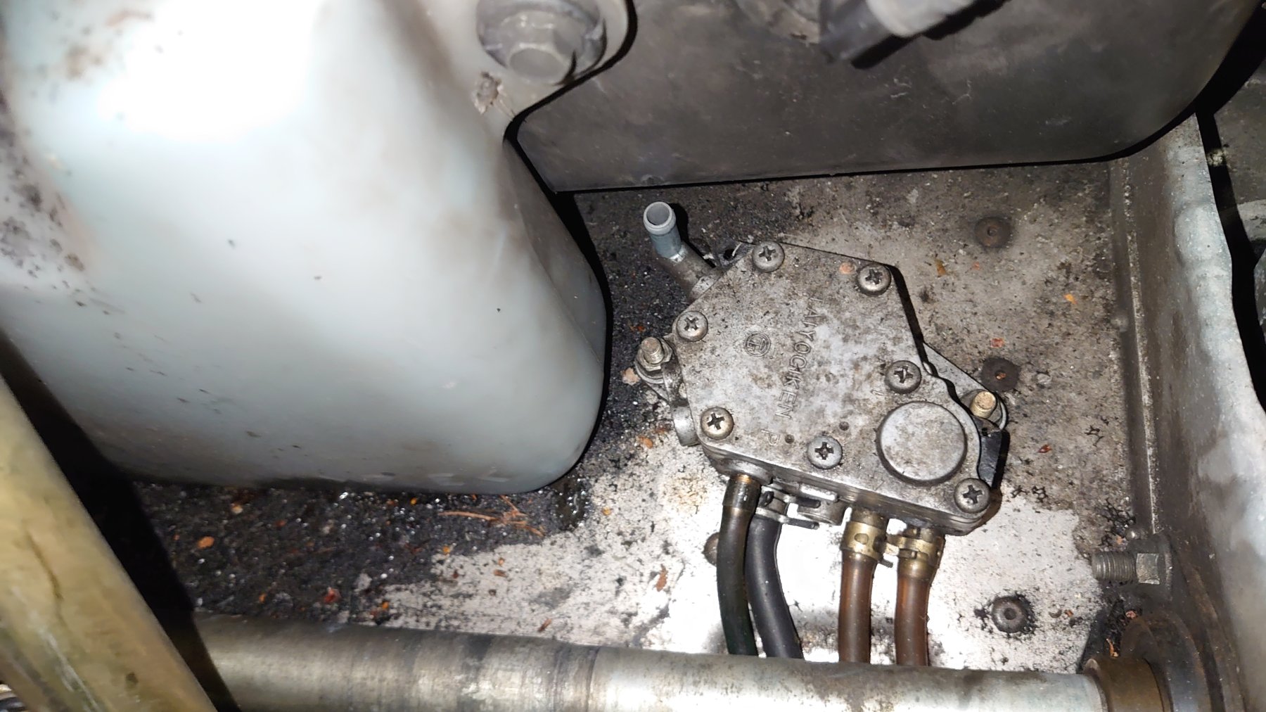 Öljy tulee yhteen linjaan.. Taiyogiken nuiden pumppujen valmistaja, hieman monimutkaisempi kuin Mikunin pumput.