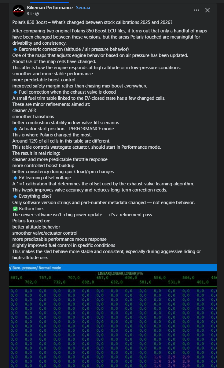Kun ajoimma tuota 2026 Boostia West Yellowstonessa, totesimma, että se vetää niinku hirvi. Kone pelas paremmin, kuin Booosti on koskaan pelannu. Nyt se tuntu siltä miltä sen olis pitäny aina tuntua. Näköjään pienilläkin hieronnoilla saadaan paljon muutoksia aikaan. Nyt se oli turbokelkan tuntunen.