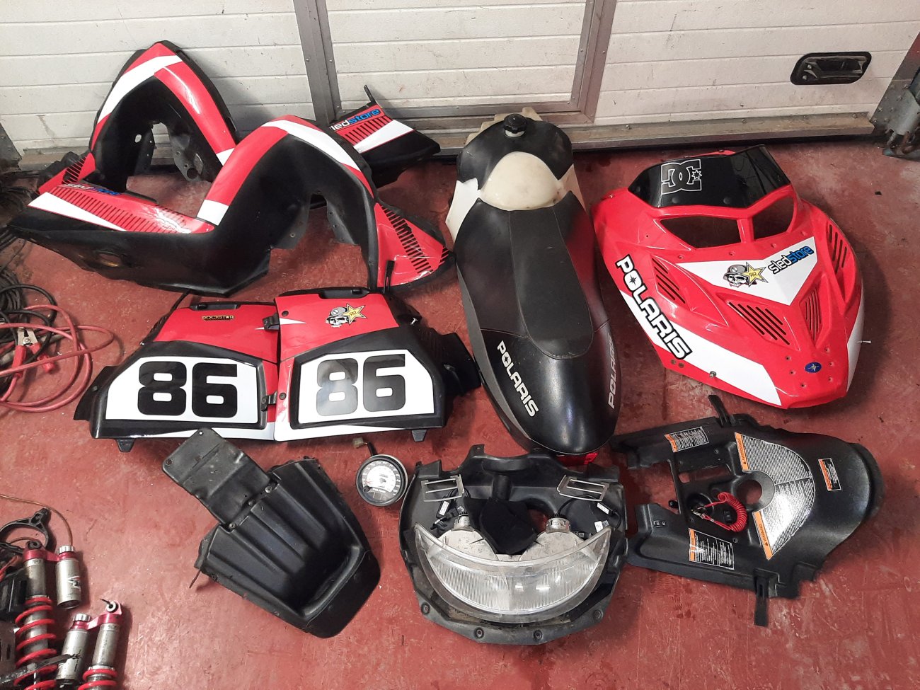 Löytyy. Vari ok, helixin rampit hiottu vaurion takia, ok rullat. 140€ Vessien pohjauspinnat jonkunverran kuluneet. Jos sylintterin vastapinnat ok niin näillä vielä käy
